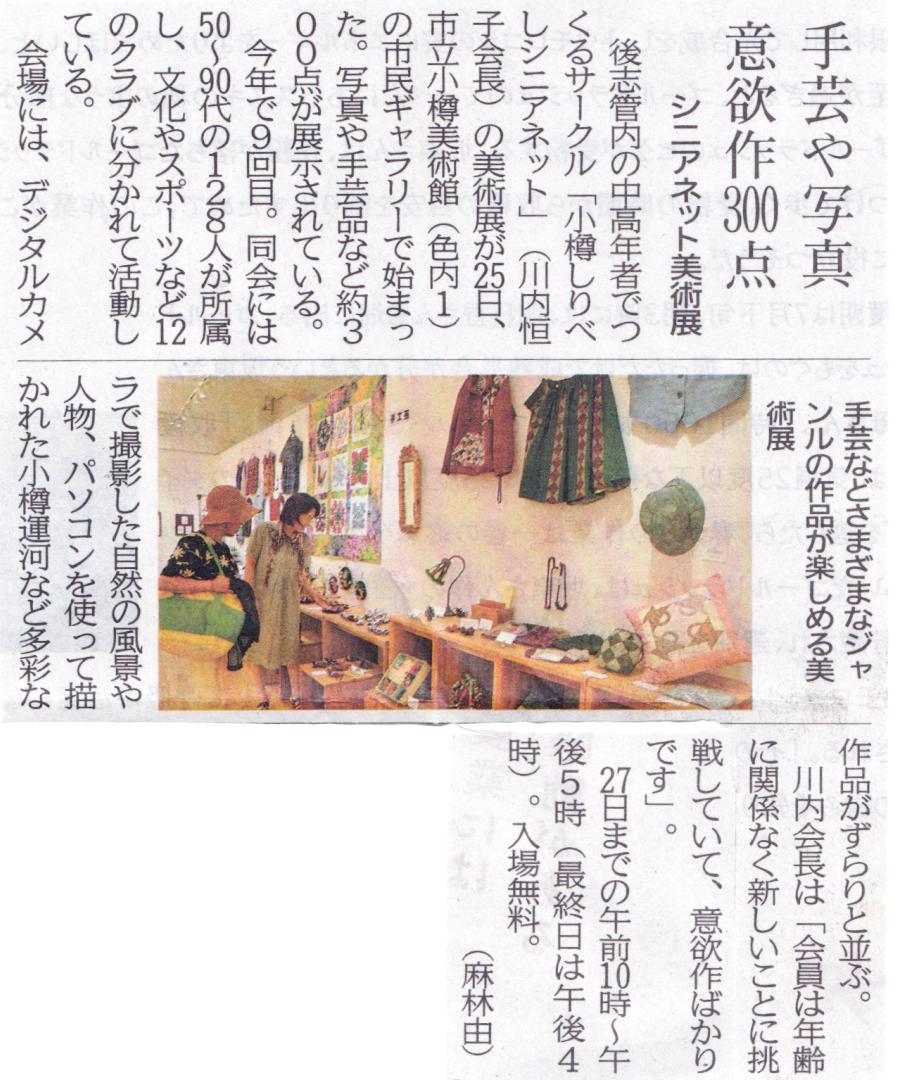 7月26日北海道新聞朝刊小樽後志版に掲載されました。