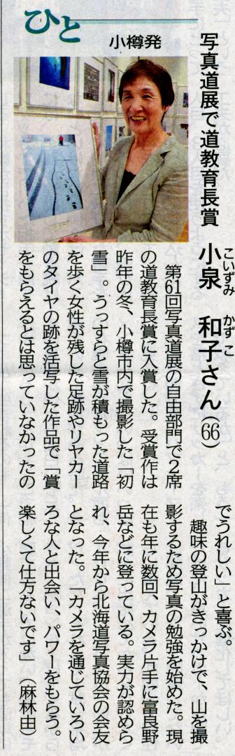 8月28日北海道新聞朝刊小樽後志版のコラム『ひと』に小泉和子さんが紹介されています。