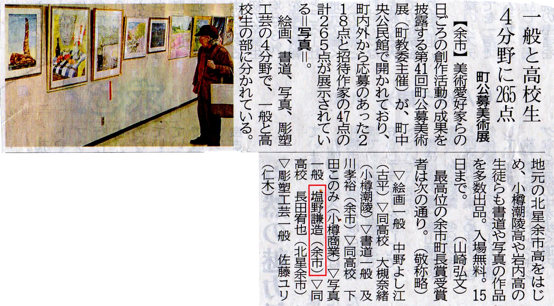北海道新聞の朝刊 小樽・後志版26頁に掲載されました。