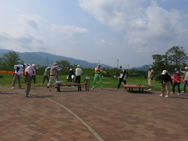 続 28年度初打ちパーク例会 ラジカセの調子が悪く田鶴さんの指揮のもと準備体操の光景NO1 投稿者柴田輝雄 投稿日2016/04/18(Mon) 22:05 No.633 続 28年度初打ちパーク例会 体操光景NO2佐藤隆夫(副部長)ローカルルールの説明いよいよスタートです。 投稿者柴田輝雄 投稿日2016/04/18(Mon) 22:10 No.634