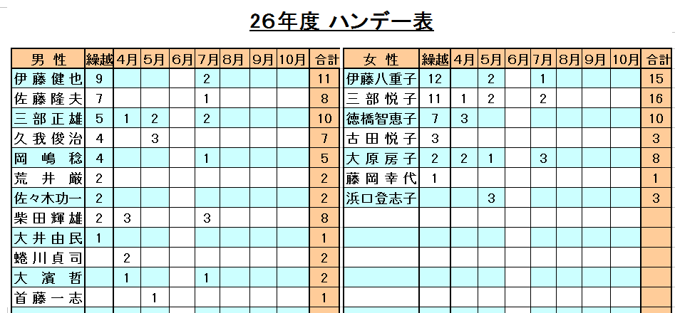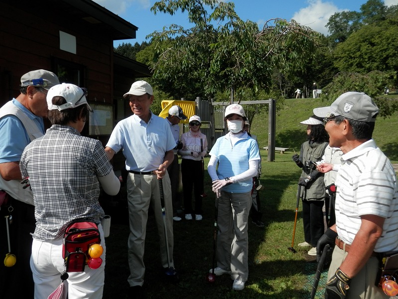 Re: 8月例会 手稲山口緑地東コース プレイー開始に当たり参加者の皆さんに部長よりの挨拶がございました。 投稿者柴田輝雄 投稿日2014/08/20(Wed) 20:31 No.520 Re: 8月例会 手稲山口緑地東コース 副会長より競技の進め方ルールについて説明あり。。 投稿者柴田輝雄 投稿日2014/08/20(Wed) 20:37 No.521 Re: 8月例会 手稲山口緑地東コース 高齢者が多いため入念に準備体操です。 投稿者柴田輝雄 投稿日2014/08/20(Wed) 20:41 No.522 Re: 8月例会 手稲山口緑地東コース プレーも終わり反省と懇談。。昼食です。 投稿者柴田輝雄 投稿日2014/08/20(Wed) 20:46 No.523 Re: 8月例会 手稲山口緑地東コース 部長より成績発表に聞き入るみなさん、入賞者はほっとしている様子です。部長の成績脅威的なスコアーでした。 投稿者柴田輝雄 投稿日2014/08/20(Wed) 20:54 No.524 Re: 8月例会 手稲山口緑地東コース 参加された皆様の全体写真です。 投稿者柴田輝雄 投稿日2014/08/20(Wed) 20:57 No.525