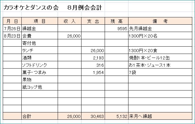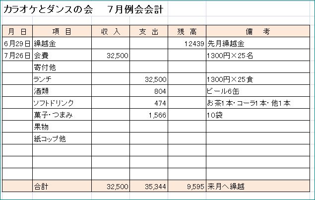 続 7月のカラダン 月替わりでスター誕生です。 投稿者古田悦子 投稿日2016/07/27(Wed) 16:38 No.621 続 7月のカラダン ダンスレッスンから始まりました。 投稿者古田悦子 投稿日2016/07/27(Wed) 16:40 No.622 会計報告 ・ 投稿者宮尾一美 投稿日2016/07/27(Wed) 20:07 No.623