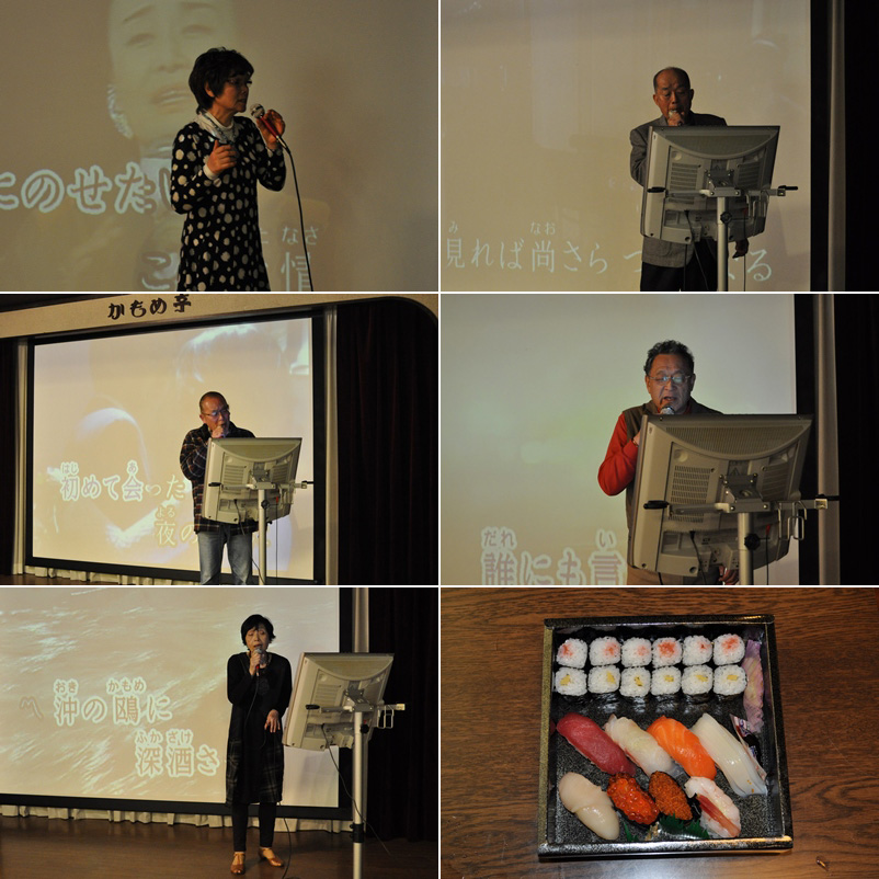 カラオケ三昧 今年度最後のカラダンは先に総会を行い、この一年の会計報告、役員の改選を行い春からは新スタッフで運営されます。今月も和気藹々と3時半までたっぷりと楽しみました。 投稿者松本康志 投稿日2015/03/30(Mon) 09:46 No.540 ダンスタイム 投稿者松本康志 投稿日2015/03/30(Mon) 09:47 No.541 ダンスタイム2 投稿者松本康志 投稿日2015/03/30(Mon) 09:48 No.542 ディスコダンス OSSでは恒例の踊りです。いつもマイクを握らされるMさん、ありがとうございます。なかなかステップが覚えきれない方もいますので、皆さん協力して覚えましょう。 投稿者松本康志 投稿日2015/03/30(Mon) 09:51 No.543 会計報告 3月例会は22名のご参加をいただきました。いつもは800円のお弁当でしたが、政寿司ポイントが11000円にもなったので、少し足して1580円のお寿司にいたしました。 投稿者宮尾一美 投稿日2015/03/30(Mon) 19:23 No.544 26年度決算報告 今年度は9回の例会を持つことができ、213名のご参加をいただきました。これは1回平均23名強の参加状態です。昨年度は29名平均だったことと比べると5名少ない現状です。来年度も皆様と楽しい時間を持ちたいものです。沢山の会員の皆様のご参加をお持ちいたします。 投稿者宮尾一美 投稿日2015/03/30(Mon) 19:24 No.545