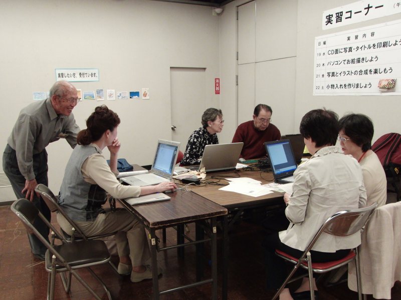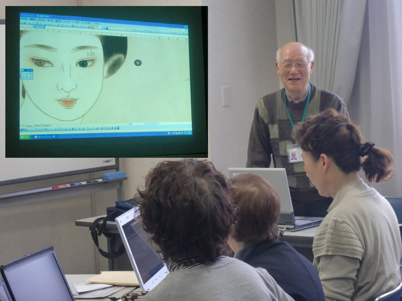 『パソコン画』の特徴は紙や絵の具・鉛筆や絵筆を使わずパソコンとマウスだけで描きます。パソコンで学び合うシニアネットに適したクラブです。パソコンでも絵を描けるなんて面白いでしょ! 初歩から手ほどきを致します。興味のある会員は是非ご参加下さい。、随時受け付けいたしております。