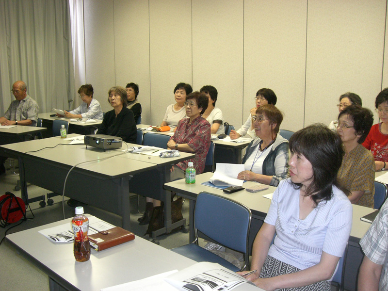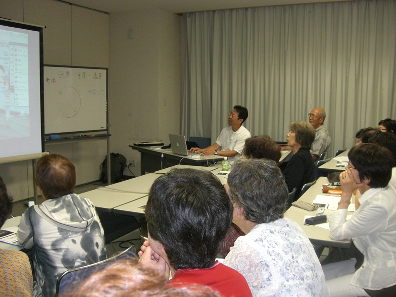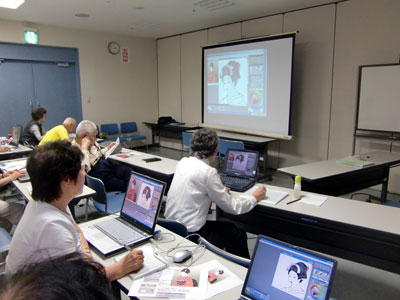 Re: 特別講習会 私達シニァ族からは息子のような若い先生ですが、極めて分かり安く丁寧に、投影画像に自ら描画しながら熱心にお話いただきました。 投稿者浜口公生 投稿日2009/08/05(Wed) 12:16 No.30 Re: 特別講習会 皆さん真剣に聞き入っています。 投稿者浜口公生 投稿日2009/08/05(Wed) 12:18 No.31 Re: 特別講習会 バソコン画は塗り絵と思って描いてきた私達に、お絵描きの心、構図、色彩などに気がつかなかった構想や視点にヒントを与えて下さって、とても楽しい講演でした。 投稿者浜口公生 投稿日2009/08/05(Wed) 12:37 No.33