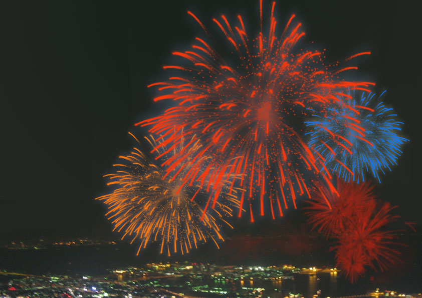 花火大会の写真に刺激を受けPhotoshop Elemennts のブラシツールで作成いたしました。