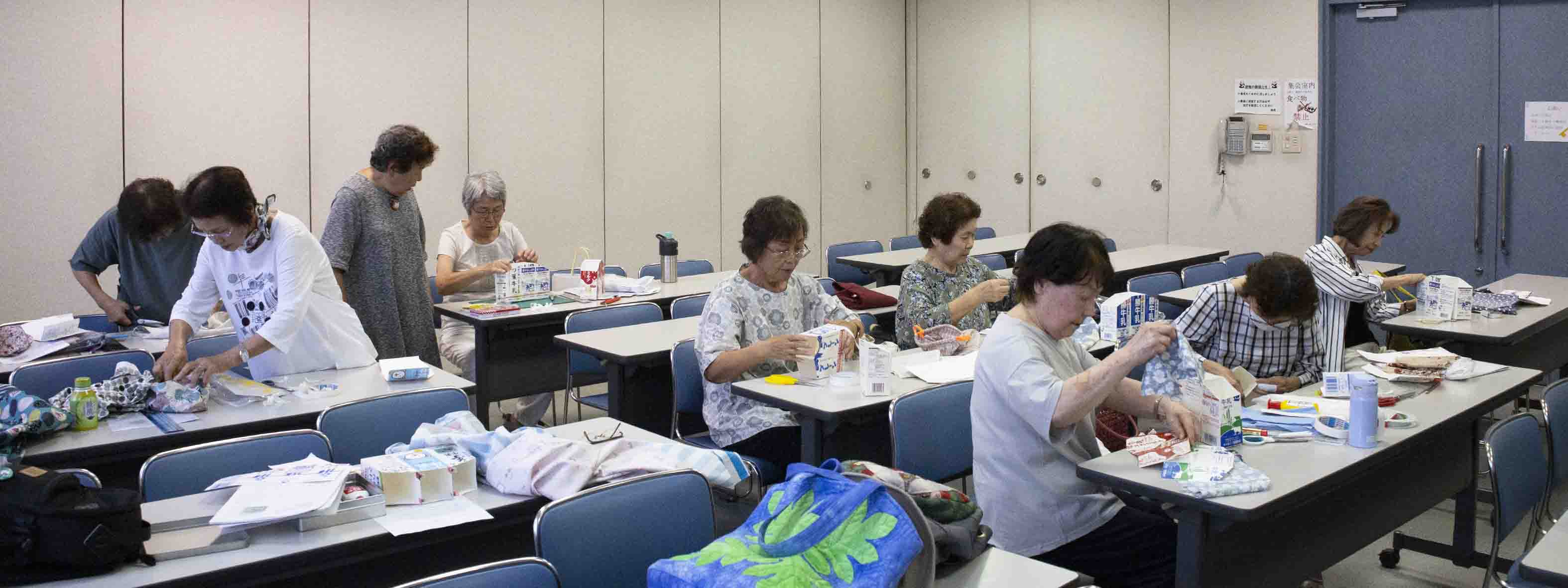 趣味の多い方が沢山いますので、会員の中から順次講師をお願いし、ファスナーブローチ、布草履、鍋帽子、古い着物で小物入れ袋、裁縫箱、マフラーなどを作り、和気あいあいと楽しいクラブです、興味のある方はいつでも入部大歓迎です。