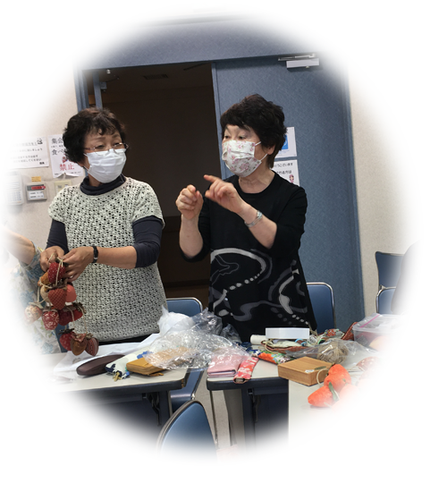 趣味の多い方が沢山いますので、会員の中から順次講師をお願いし、ファスナーブローチ、布草履、鍋帽子、古い着物で小物入れ袋、裁縫箱、マフラーなどを作り、和気あいあいと楽しいクラブです、興味のある方はいつでも入部大歓迎です。
