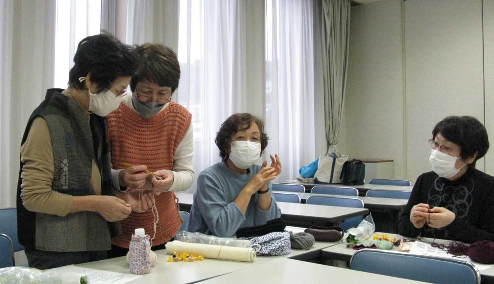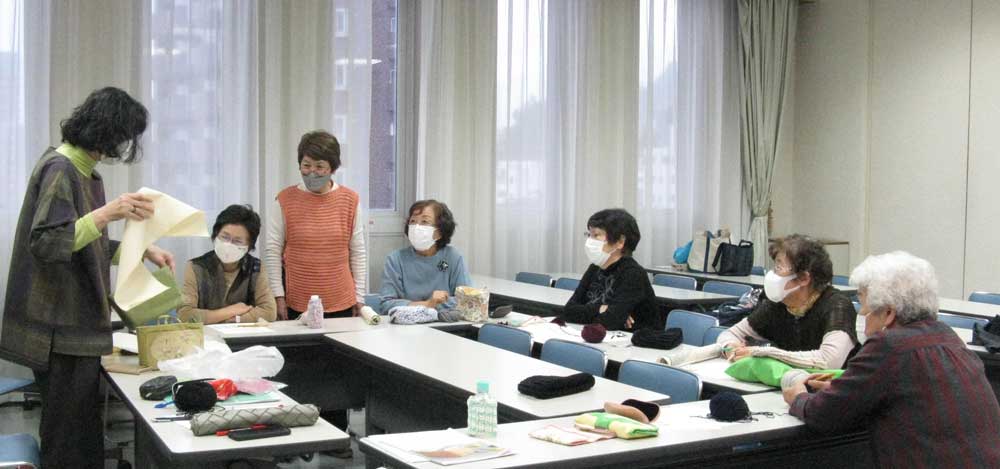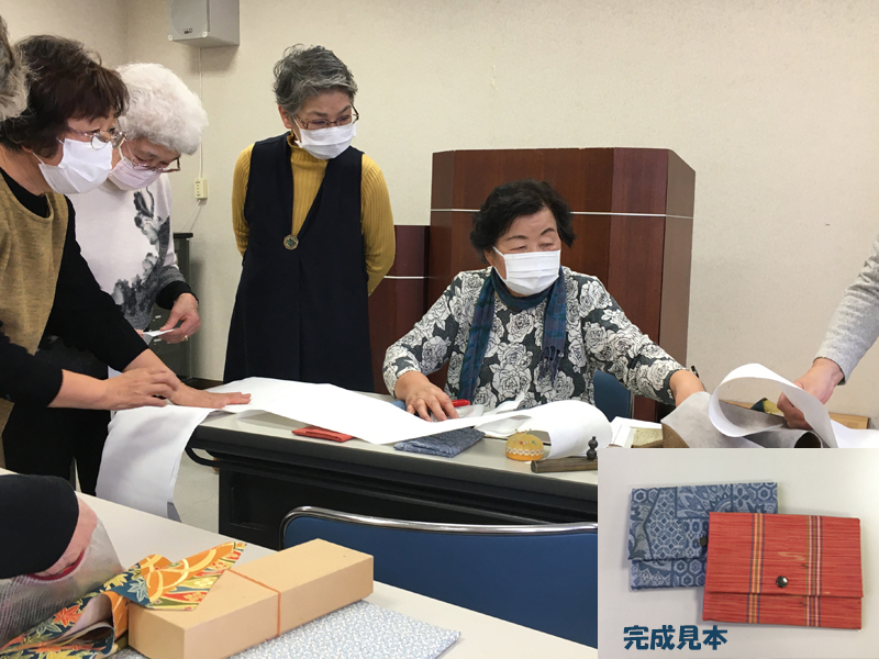 趣味の多い方が沢山いますので、会員の中から順次講師をお願いし、ファスナーブローチ、布草履、鍋帽子、古い着物で小物入れ袋、裁縫箱、マフラーなどを作り、和気あいあいと楽しいクラブです、興味のある方はいつでも入部大歓迎です。