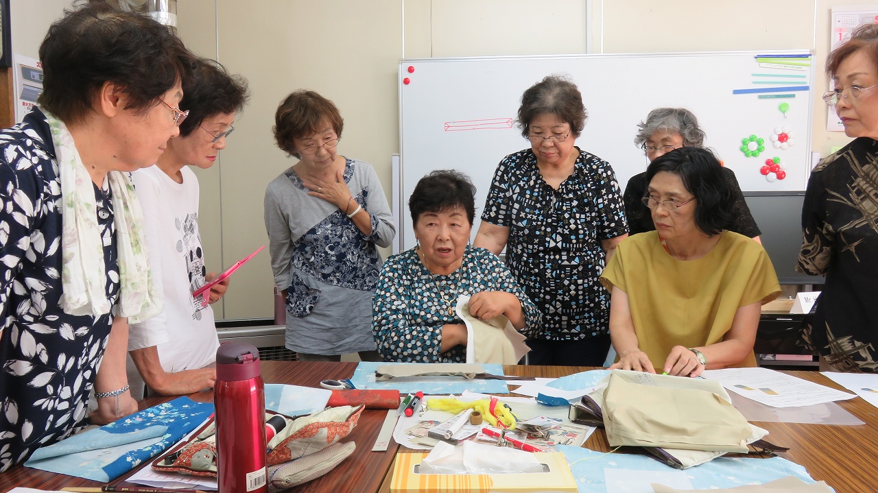 趣味の多い方が沢山いますので、会員の中から順次講師をお願いし、ファスナーブローチ、布草履、鍋帽子、古い着物で小物入れ袋、裁縫箱、マフラーなどを作り、和気あいあいと楽しいクラブです、興味のある方はいつでも入部大歓迎です。