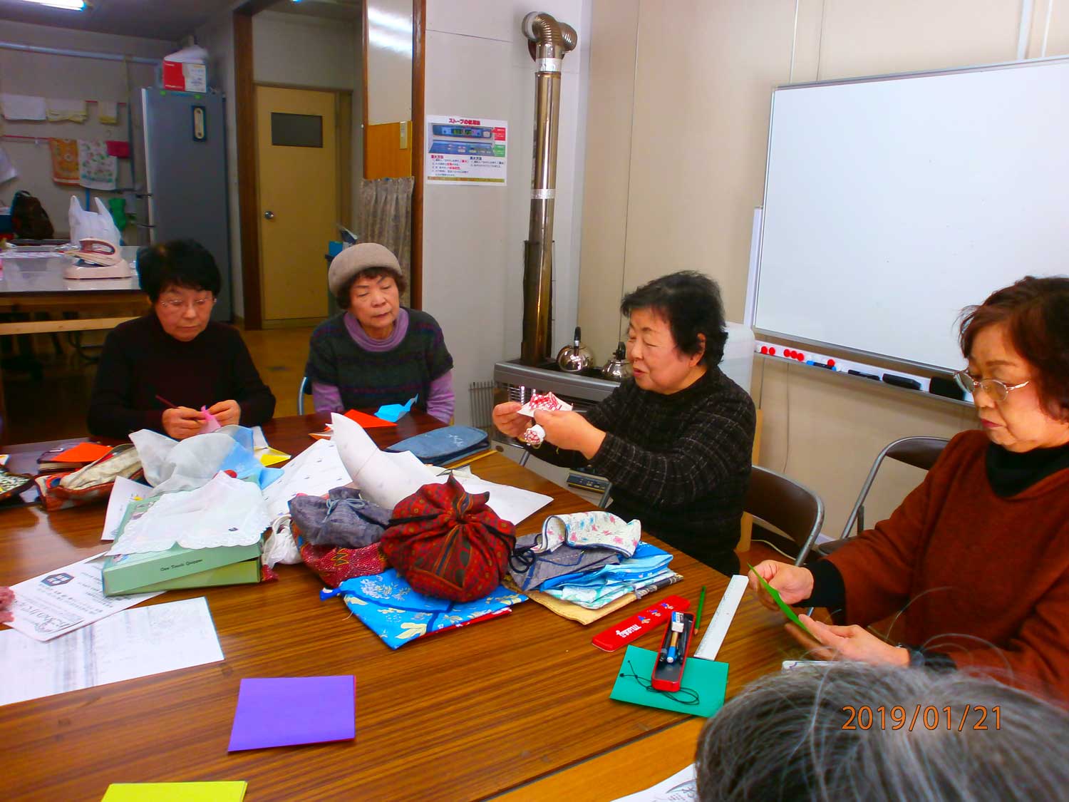 趣味の多い方が沢山いますので、会員の中から順次講師をお願いし、ファスナーブローチ、布草履、鍋帽子、古い着物で小物入れ袋、裁縫箱、マフラーなどを作り、和気あいあいと楽しいクラブです、興味のある方はいつでも入部大歓迎です。