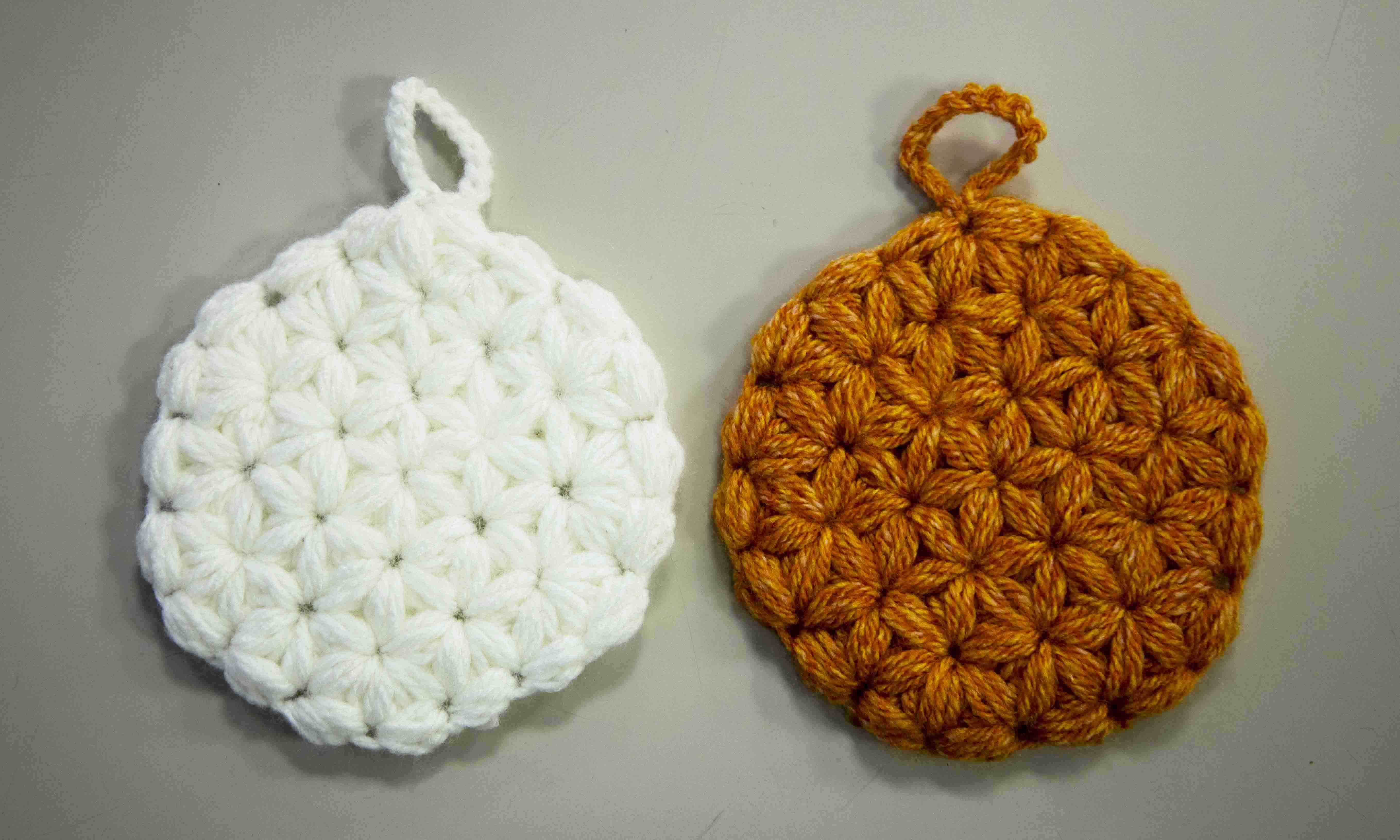 アクリル束子 総会後にアクリル束子を編みました。アクリル束子は名前の通りアクリル糸を使って編みます。この束子は、洗剤要らずで食器等の汚れが落ちるという優れもので、とってもエコなので、今注目を浴びているものです。 投稿者宮尾一美 投稿日2024/12/14(Sat) 19:50 No.521 アクリル束子 今回の束子は、ペットボトル入れでも使ったリフ編みという編み方で編み上げていきます。直径10cm強のまあるい束子です。 投稿者宮尾一美 投稿日2024/12/14(Sat) 19:51 No.522