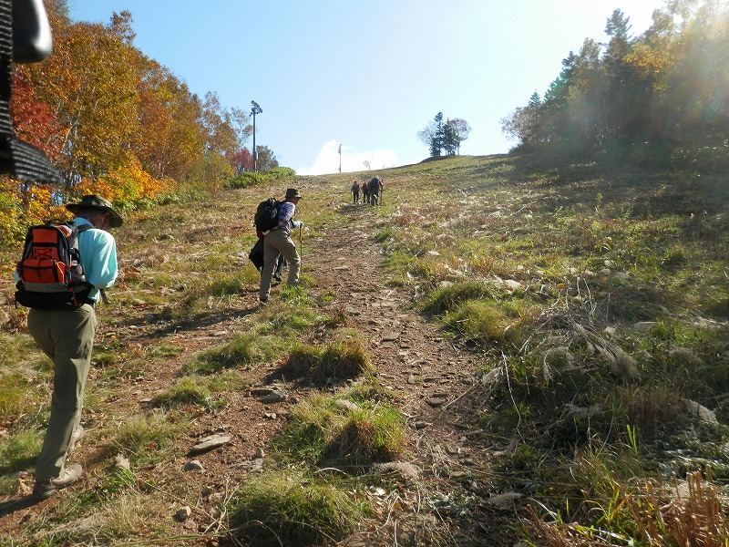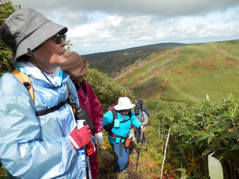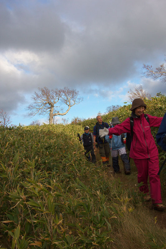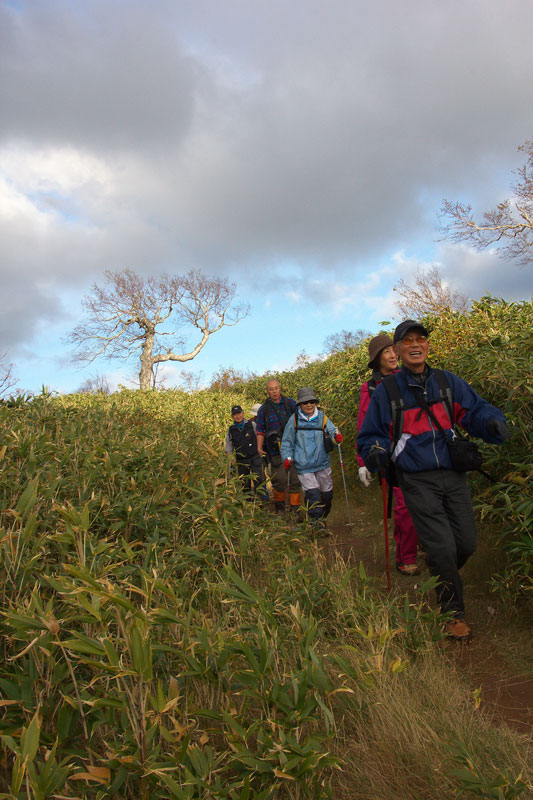 Re: 余市岳 小さく小さく皆さんが見えました。部長に電話したら 向こうからもなんとなく人影が見えると言っていました。写真上でクリックすると少し大きくなります。 投稿者川内恒子 投稿日2014/10/02(Thu) 23:13 No.174 Re: 余市岳 この後また一人で 折り返しました。花の時期にもう一度来たいと思いつつ 大きく深い溝に落ちないように、笹で目を傷めないように気を付けながら 写真を撮りながらゆっくり下山しました。 投稿者川内恒子 投稿日2014/10/02(Thu) 23:14 No.175 Re: 余市岳 ゴンドラの乗り場まで帰り みんなが帰ってくるのを待っていました。終わりかけの高山植物を撮っていたので退屈なことはありませんでした。・・・が、ゴンドラの最終時間が近くなってきたのです…心配になってきました。何かあったのではないか、誰かが足を痛めたのではないか・・・ヘリで搬送…そんなことがないように…・心配してました。全員 元気に帰還し本当にホッとしました。 投稿者川内恒子 投稿日2014/10/02(Thu) 23:21 No.176 Re: 余市岳 みんな泥だらけの靴になっていました。登山道の悪条件を物語っています。前日の雨ですから…・ブラシで洗って ゴンドラに乗り込みました。 投稿者川内恒子 投稿日2014/10/02(Thu) 23:25 No.177 Re: 余市岳 * 投稿者川内恒子 投稿日2014/10/02(Thu) 23:26 No.178 Re: 余市岳 * 投稿者川内恒子 投稿日2014/10/02(Thu) 23:28 No.179 Re: 余市岳 全員無事に帰宅できて本当によかったです。それにしても みんな元気!素晴らしい笑顔でした。すばらしい!!!そんな皆さんとご一緒できてよかったです。 投稿者川内恒子 投稿日2014/10/02(Thu) 23:34 No.180 Re: 余市岳 この白い点は川内さんです。 投稿者佐藤和春 投稿日2014/10/03(Fri) 09:31 No.182 Re: 余市岳 ゴンドラから山頂まで4kメートル一つとして らくな道なかった。 投稿者柴田輝雄 投稿日2014/10/03(Fri) 22:54 No.183 Re: 余市岳 急坂を登り始めたばかりなのに汗びしょりカバの様に鼻と口全開 吐息が激しくなって来ました、私は心臓が強く汗などかくことはないのですが。。辛かった。年に1度はこの様な忍耐が必要だと思いながら続行です。 投稿者柴田輝雄 投稿日2014/10/03(Fri) 23:10 No.184 Re: 余市岳 頂上が近くなった手前にはえ松の広大な群生が2か所ありました。 投稿者柴田輝雄 投稿日2014/10/03(Fri) 23:16 No.185 Re: 余市岳 頂上と思いほっと一息記念写真撮っていただきましたが頂上はまだ400M先だと。。羊蹄山が正面に見えました。 投稿者柴田輝雄 投稿日2014/10/03(Fri) 23:26 No.186 羊蹄山 こんなに高いところから見る羊蹄山は始めてです。ここから見る羊蹄山が格別なのだそうです。曇っていて、霞んでいるのが残念です。 投稿者佐藤和春 投稿日2014/10/04(Sat) 05:28 No.187