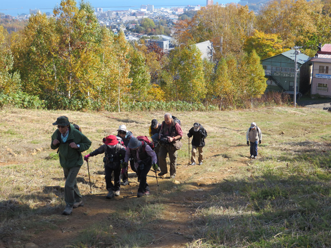 続 小樽・天狗山登山 スタート直後は息遙々と足取りも軽く空は快晴・・・・ 投稿者蜷川 貞司 投稿日2015/10/16(Fri) 17:41 No.191 続 小樽・天狗山登山 錦秋の木々を観ながら・・・・ 投稿者蜷川 貞司 投稿日2015/10/16(Fri) 17:59 No.192 続 小樽・天狗山登山 途中こんな物が落ちていました。 投稿者蜷川 貞司 投稿日2015/10/16(Fri) 18:00 No.193 続 小樽・天狗山登山 登山道はふかふかで落ち葉の絨毯の様です。 投稿者蜷川 貞司 投稿日2015/10/16(Fri) 18:02 No.194 続 小樽・天狗山登山 合流後、天狗山の山頂へ山頂での集合写真です。 投稿者蜷川 貞司 投稿日2015/10/16(Fri) 18:04 No.195 続 小樽・天狗山登山 昼食後、解散前の記念写真です 投稿者蜷川 貞司 投稿日2015/10/16(Fri) 18:06 No.196 続 小樽・天狗山登山 小樽市内がクッキリ見えました。新しいウインドウで開いて表示し、拡大して見て下さい。 投稿者佐藤和春 投稿日2015/10/16(Fri) 18:18 No.197 続 小樽・天狗山登山 晴天での登山良かったですね。佐藤さんの撮った市街展望素晴らしいですね。こんなに全体が綺麗に撮れている写真はあまり見かけません、大きくして見ております。 投稿者山吹和康 投稿日2015/10/17(Sat) 07:07 No.198 続 小樽・天狗山登山 投稿が遅くなりましたが記念写真ですので乗せる事に久ぶりの登山。この山にのぼるのは50年振りでしょうか少しも変わっていませんでした。登り始めて先ずお地蔵さんがお迎えです。全部で53基あるのですが最初は集団でお迎えです。 投稿者柴田輝雄 投稿日2015/11/01(Sun) 20:10 No.199 続 小樽・天狗山登山 お地蔵さんの横には番号が書かれています。 投稿者柴田輝雄 投稿日2015/11/01(Sun) 20:14 No.200 続 小樽・天狗山登山 途中 祝津岬をフェリーが通過するのが見えました。 投稿者柴田輝雄 投稿日2015/11/01(Sun) 20:18 No.201 続 小樽・天狗山登山 頂上に近ずいてきました。この右側に帰り道ですがキノコオシロイシメジを発見 皆で採って来たのです。皆様 頂上を目指して登っています。 投稿者柴田輝雄 投稿日2015/11/01(Sun) 20:28 No.202 続 小樽・天狗山登山 いよいよ頂上まじかです。ゴンドラで登った方がお迎えです。今回の登山では下りが辛かった。。落ち葉で道の状況が判らず必要以上気を使いようやく下りた次第。。筋肉痛が3日程続きました。でも良い思い出となりました。 投稿者柴田輝雄 投稿日2015/11/01(Sun) 20:39 No.203
