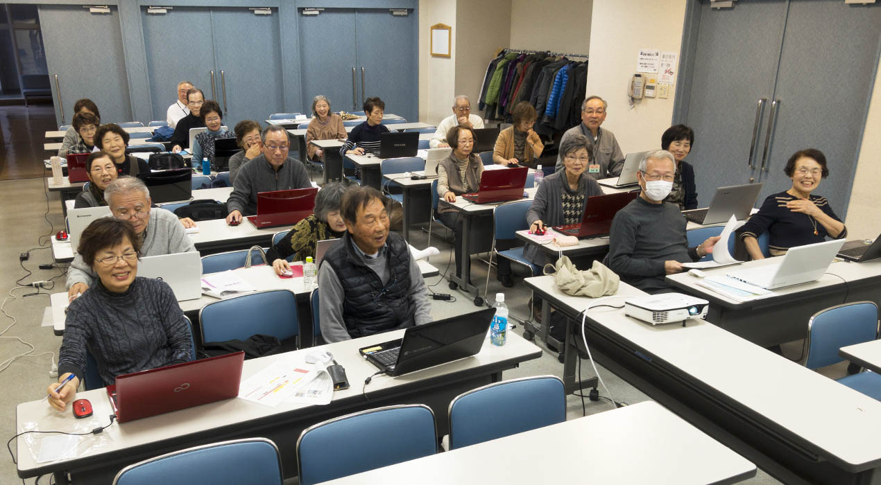 パソコンクラブは、楽しいシニアライフ実現のパートナーとしてこよなくパソコンを愛し、その利用のさまざまなことを『学びあい、支えあって』学習するクラブです。