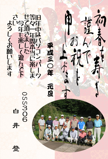 内容は・・・ 年賀状といえばワードや筆ぐるめなどが一般的ですが、今回はパワーポイントの機能を使って作成していきます。手順は・・・1、画像を入れ、トリミング縁取りなどを調整する。2、文字を入れ、書体・大きさ・色・縁取りなどを調整する。3、イラストをJPGから透明PNGにする。パワーポイントの扱いに慣れていないので、画像・文字を入れる手順に戸惑いながらのお勉強でした。『ワードのほうが楽だわ〜〜』という声も聞こえていました、がワードは何年も何十回もやってきました。パワーポイントはまだまだ4回目です。いろいろな事ができそうで、これから活用が期待されるソフトですね。皆で慣れていきましょう。 投稿者宮尾 一美 投稿日2017/11/15(Wed) 21:07 No.160 年賀状、出来ました 1 まずは宮尾があげました。みなさんアップお願いします。 投稿者宮尾 一美 投稿日2017/11/15(Wed) 21:13 No.161 年賀状、出来ました 2 白井登さんの作品 投稿者宮尾 一美 投稿日2017/11/16(Thu) 18:55 No.162 年賀状、出来ました 3 佐々木功一さんの作品 投稿者宮尾 一美 投稿日2017/11/16(Thu) 18:56 No.163 年賀状、出来ました 4 阿部茂樹さんの作品 投稿者宮尾 一美 投稿日2017/11/16(Thu) 19:06 No.164 動画の年賀状 パワーポイントは動画も作成できます。ご笑覧ください。https://youtu.be/tVaTk6uL-VY 投稿者佐藤和春 投稿日2017/11/17(Fri) 06:19 No.165 年賀状、出来ました 5 松本綾子さんの作品 投稿者宮尾 一美 投稿日2017/11/17(Fri) 18:50 No.166 年賀状、出来ました 6 小林セイさんの作品 投稿者宮尾 一美 投稿日2017/11/17(Fri) 18:51 No.167