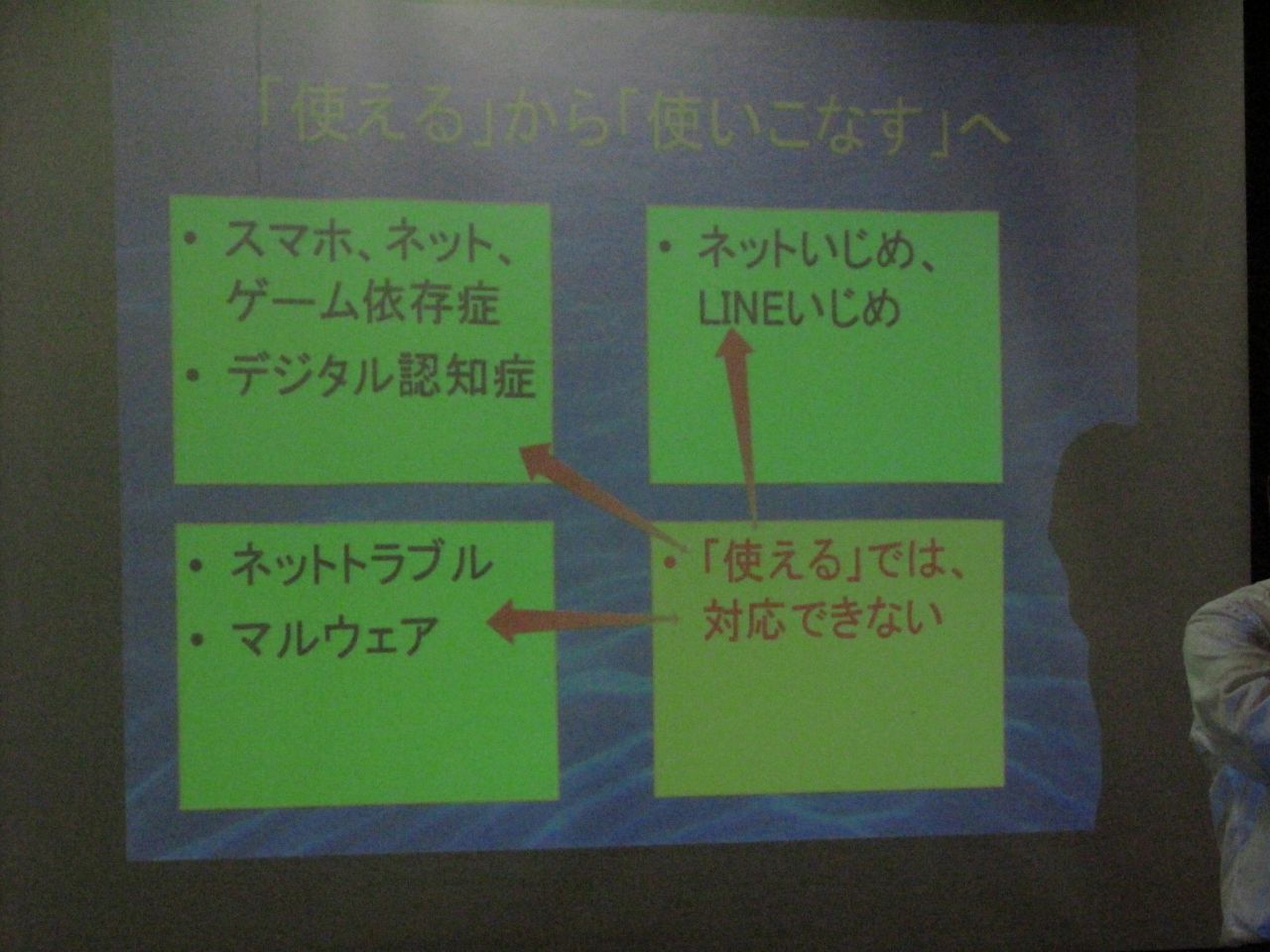 続 情報モラル講演会 まず今の世の中を取り巻く情報社会について説明がありました。参加者は36名でした。 投稿者今井 譲 投稿日2017/03/30(Thu) 17:10 No.125 続 情報モラル講演会 熱心なインターネット社会の説明がありました。 投稿者今井 譲 投稿日2017/03/30(Thu) 17:13 No.126 続 情報モラル講演会 インターネットで調べられる地図くらべ「今昔マップ」の説明 投稿者今井 譲 投稿日2017/03/30(Thu) 17:17 No.127 続 情報モラル講演会 スマホは使えるから使えこなすのが大切な事の説明。 投稿者今井 譲 投稿日2017/03/30(Thu) 17:21 No.128 続 情報モラル講演会 こうなる可能性のお話。 投稿者今井 譲 投稿日2017/03/30(Thu) 17:24 No.129 続 情報モラル講演会 熱い2時間の講演会でした。お疲れ様でした。この後32名の参加者で総会が行われました。 投稿者今井 譲 投稿日2017/03/30(Thu) 17:31 No.130