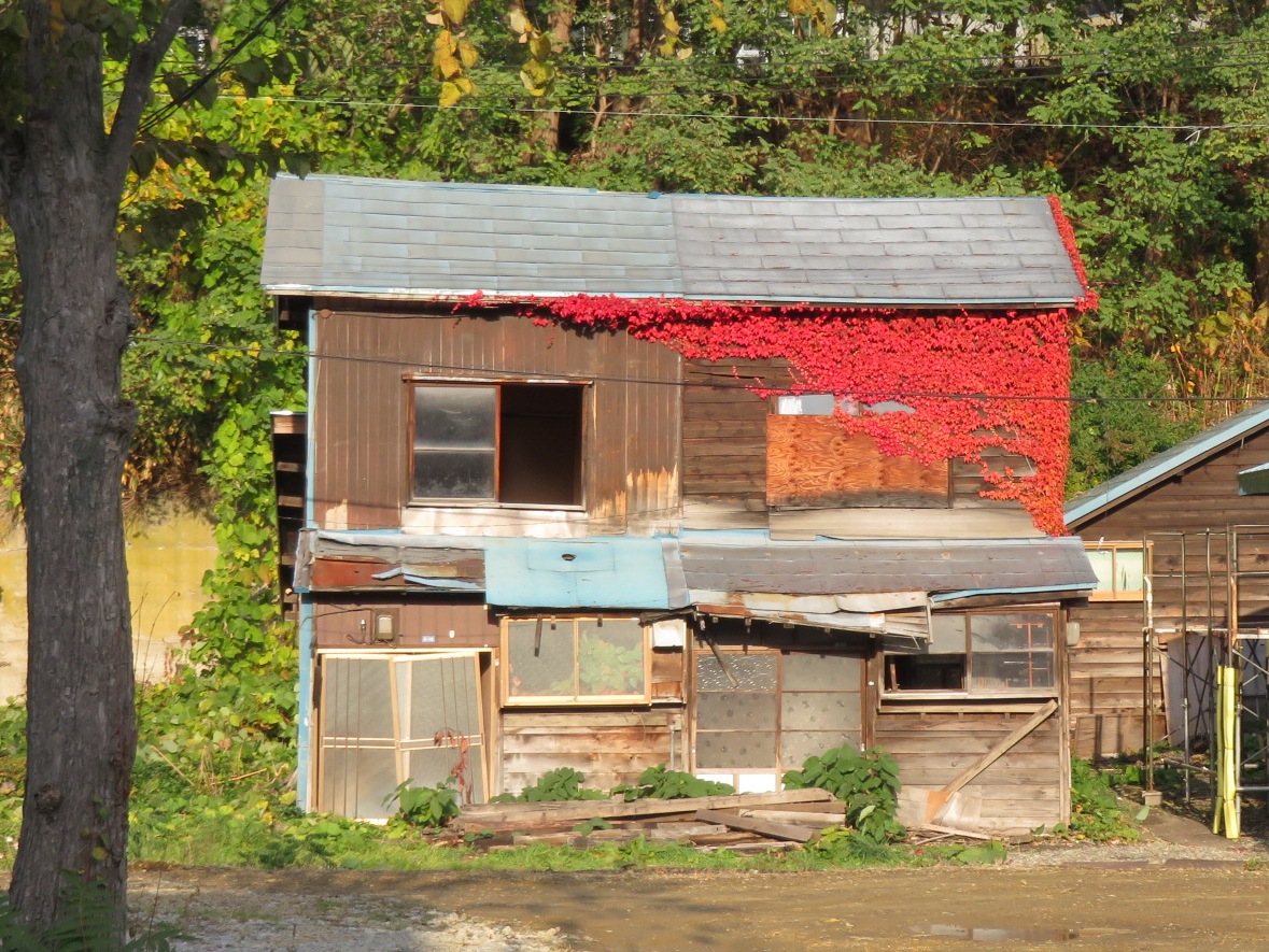 続 廃屋を飾る紅葉のツタ 見事な蔦の赤さ、秋一番の色彩ですね。廃墟とのアンバランス、これも又一つの風景です。 投稿者山吹和康 投稿日2025/10/31(Fri) 15:01 No.3975