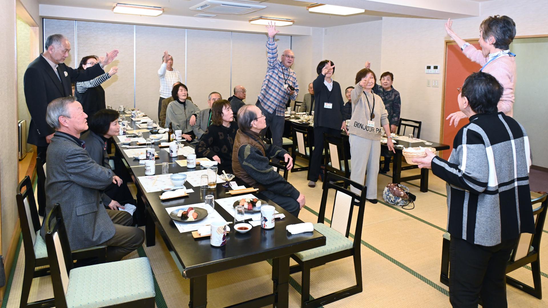 続 令和7年度定期総会 投稿者佐藤和春 投稿日2025/03/27(Thu) 15:06 No.3888 交流会 12:00から寿司和食しかまで楽しく談笑しながら美味しい和食をいただきました。 投稿者佐藤和春 投稿日2025/03/27(Thu) 15:10 No.3889 続 交流会 ゲームでたのしく盛り上がりました。 投稿者佐藤和春 投稿日2025/03/27(Thu) 15:12 No.3890 続 交流会 投稿者佐藤和春 投稿日2025/03/27(Thu) 15:14 No.3891 集合写真 最後に全員で集合写真 !! 投稿者佐藤和春 投稿日2025/03/27(Thu) 15:18 No.3892