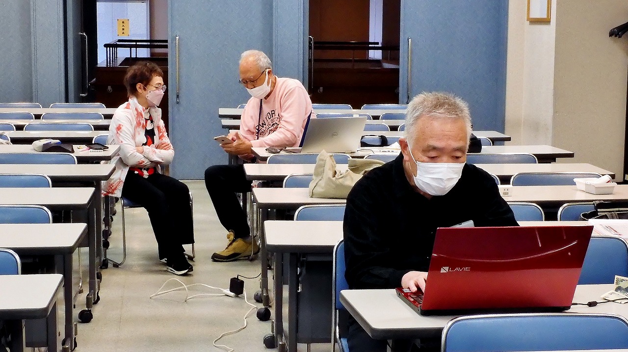 ゴールデンウイークも終わり、街も通常の生活に戻った5月10日(火曜日)いつものいなきたコミセンで4名の参加者で行われました。来られた方はスマホのLINEの事で相談に来られたようです。ここのところ5名前後の参加者で行われ、決して密にはなりません。次回の開催は27日(金曜日)です。皆様の参加をお待ちしております。(4月は投稿者が2回とも欠席で投稿出来ませんでした。)