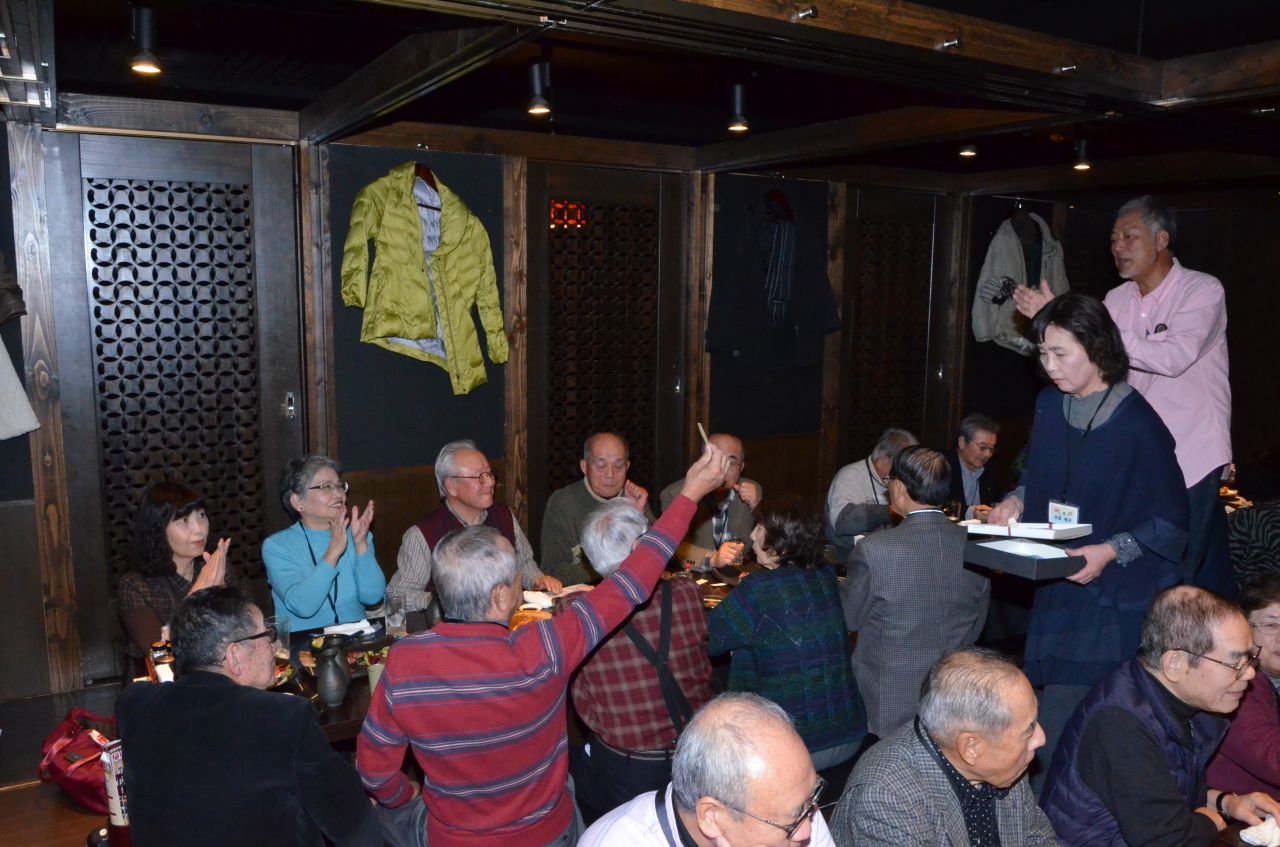 続 OSS忘年会を楽しみました。 最初に会員活動部,幹事の原田さんからの説明事項の話がありました。 投稿者今井 譲 投稿日2017/12/04(Mon) 23:48 No.72 続 OSS忘年会を楽しみました。 続いて斉藤会長から挨拶と乾杯です。 投稿者今井 譲 投稿日2017/12/04(Mon) 23:52 No.73 続 OSS忘年会を楽しみました。 乾杯、1年間お疲れ様でした。 投稿者今井 譲 投稿日2017/12/04(Mon) 23:53 No.74 続 OSS忘年会を楽しみました。 料理、飲物が次々と運ばれて来ます。 投稿者今井 譲 投稿日2017/12/04(Mon) 23:55 No.75 続 OSS忘年会を楽しみました。 料理A 投稿者今井 譲 投稿日2017/12/04(Mon) 23:57 No.76 続 OSS忘年会を楽しみました。 宴たけなわで抽選会が始まりました。当選者が次々と。 投稿者今井 譲 投稿日2017/12/05(Tue) 00:10 No.82 続 OSS忘年会を楽しみました。 当選しました。 投稿者今井 譲 投稿日2017/12/05(Tue) 00:24 No.83 続 OSS忘年会を楽しみました。 当たりました。 投稿者今井 譲 投稿日2017/12/05(Tue) 00:25 No.84 続 OSS忘年会を楽しみました。 こちらも当たりました。 投稿者今井 譲 投稿日2017/12/05(Tue) 00:28 No.85 続 OSS忘年会を楽しみました。 私も当たりました。 投稿者今井 譲 投稿日2017/12/05(Tue) 00:29 No.86 続 OSS忘年会を楽しみました。 谷村副会長の中締めです。 投稿者今井 譲 投稿日2017/12/05(Tue) 00:32 No.87 続 OSS忘年会を楽しみました。 お疲れ様でした。約2時間楽しみました。 投稿者今井 譲 投稿日2017/12/05(Tue) 00:34 No.88