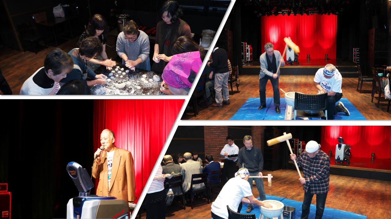 続 スナップ写真そのA 『今日という日は二度とありません!時間の許す限り素敵な仲間と思う存分楽しい時間を過ごしましょう』皆さんの唄、ダンスにパワーを頂きましたね〜ビンゴゲームの当選者10名又参加者全員にオリンピックイヤーを記念すべく100円記念硬貨を配布させて頂きました。 投稿者原田久嗣 投稿日2020/02/13(Thu) 07:45 No.213 動画 餅つきの動画をアップしました。限定公開ですのでURLを知る人のみ見ることが出来ます。https://youtu.be/Ny89brPiw5s 投稿者佐藤和春 投稿日2020/02/14(Fri) 08:59 No.214