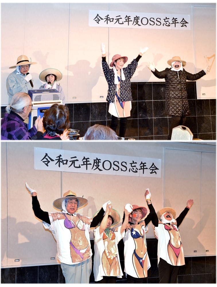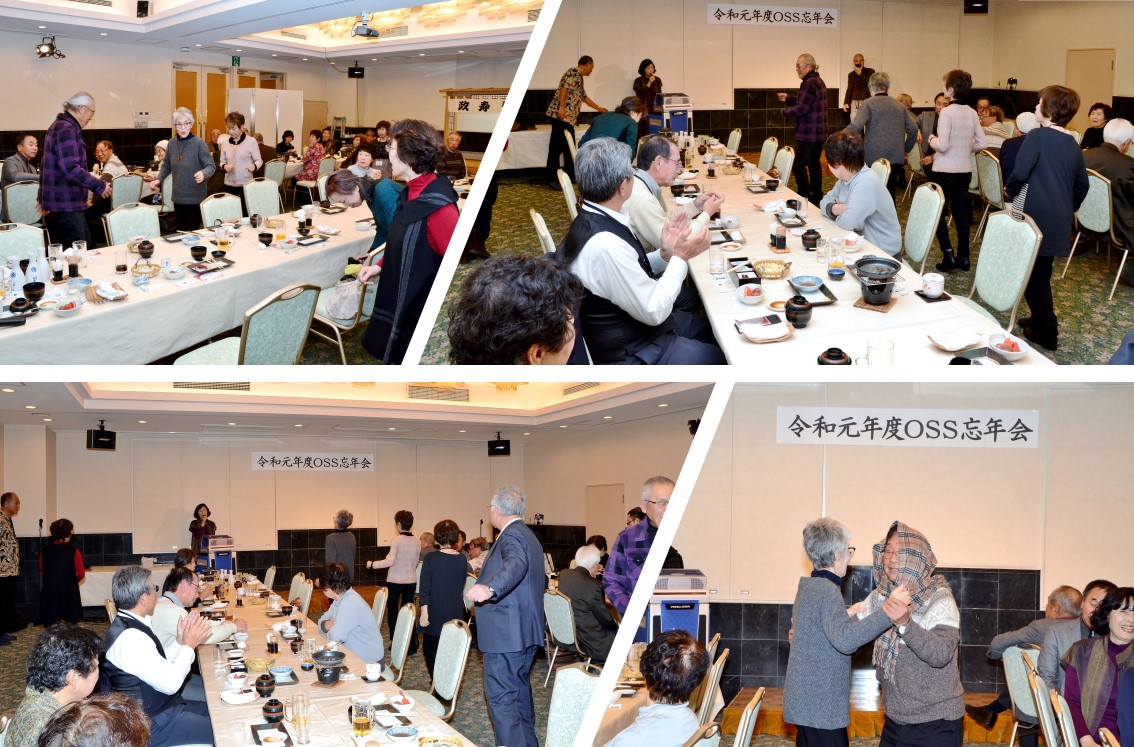 続 令和元年度OSS忘年会 会食・懇談をはじめて約40分後に今日の唯一の余興『麦畑』が披露されました。踊り:村上テル子さん、藤原美穂子さん歌:三部孝雄さん、森敦子さんです。最後にアッというサプライズがあり大いに盛り上がりました。 投稿者佐藤和春 投稿日2019/12/03(Tue) 11:51 No.207 続 令和元年度OSS忘年会 その後有志がカラオケを披露!! 投稿者佐藤和春 投稿日2019/12/03(Tue) 11:53 No.208 続 令和元年度OSS忘年会 お馴染みのメンバー? 投稿者佐藤和春 投稿日2019/12/03(Tue) 11:54 No.209 続 令和元年度OSS忘年会 カラオケにあわせてダンスも! 投稿者佐藤和春 投稿日2019/12/03(Tue) 11:56 No.210 続 令和元年度OSS忘年会 最後に全員で集合写真 投稿者佐藤和春 投稿日2019/12/03(Tue) 11:58 No.211
