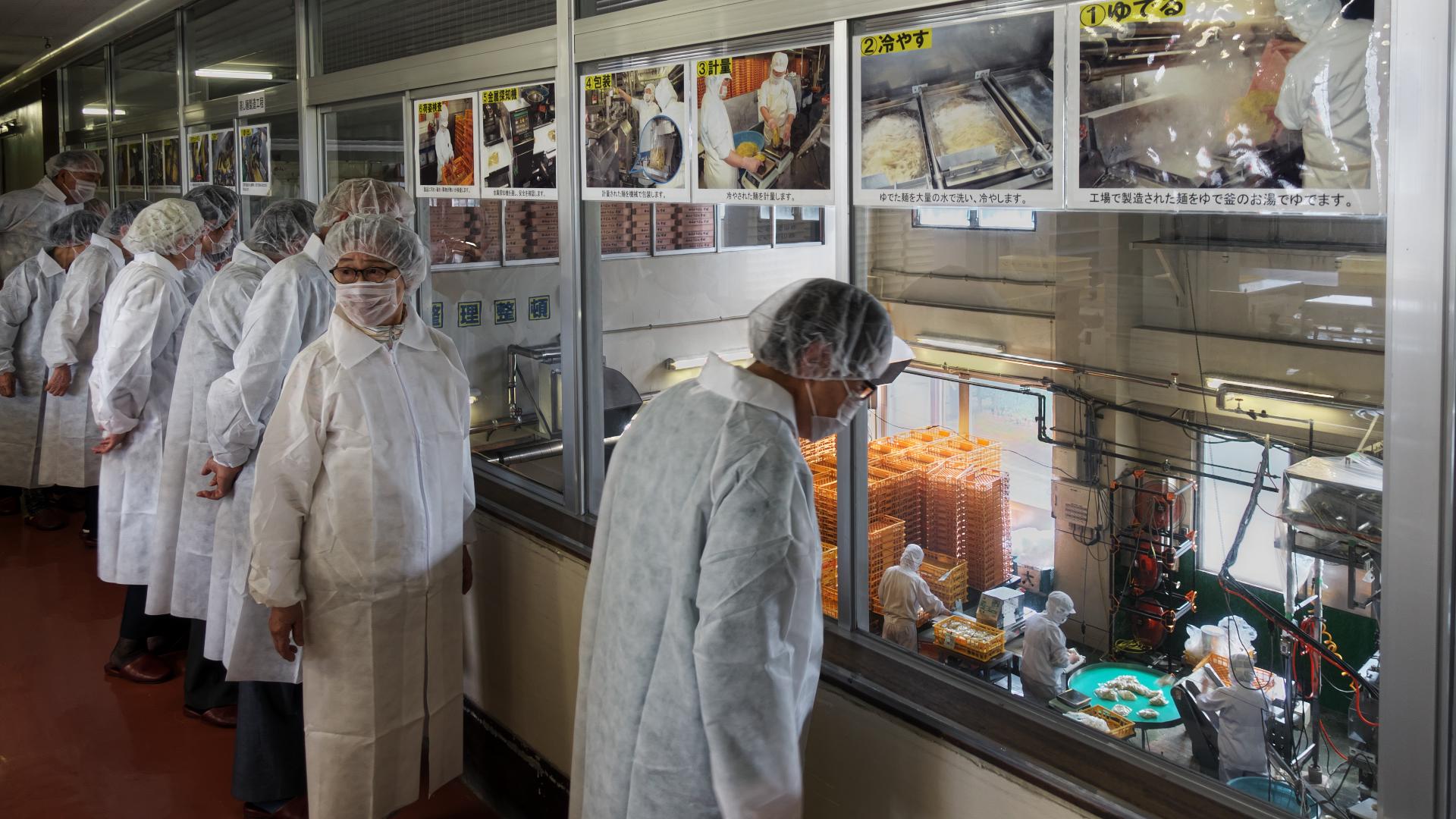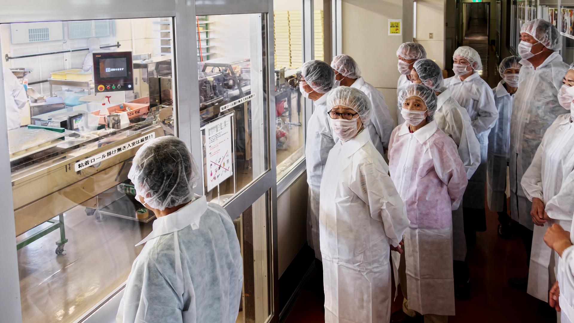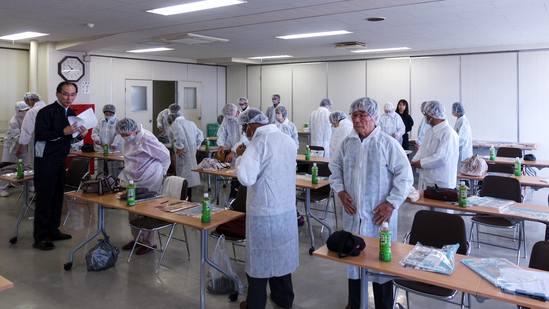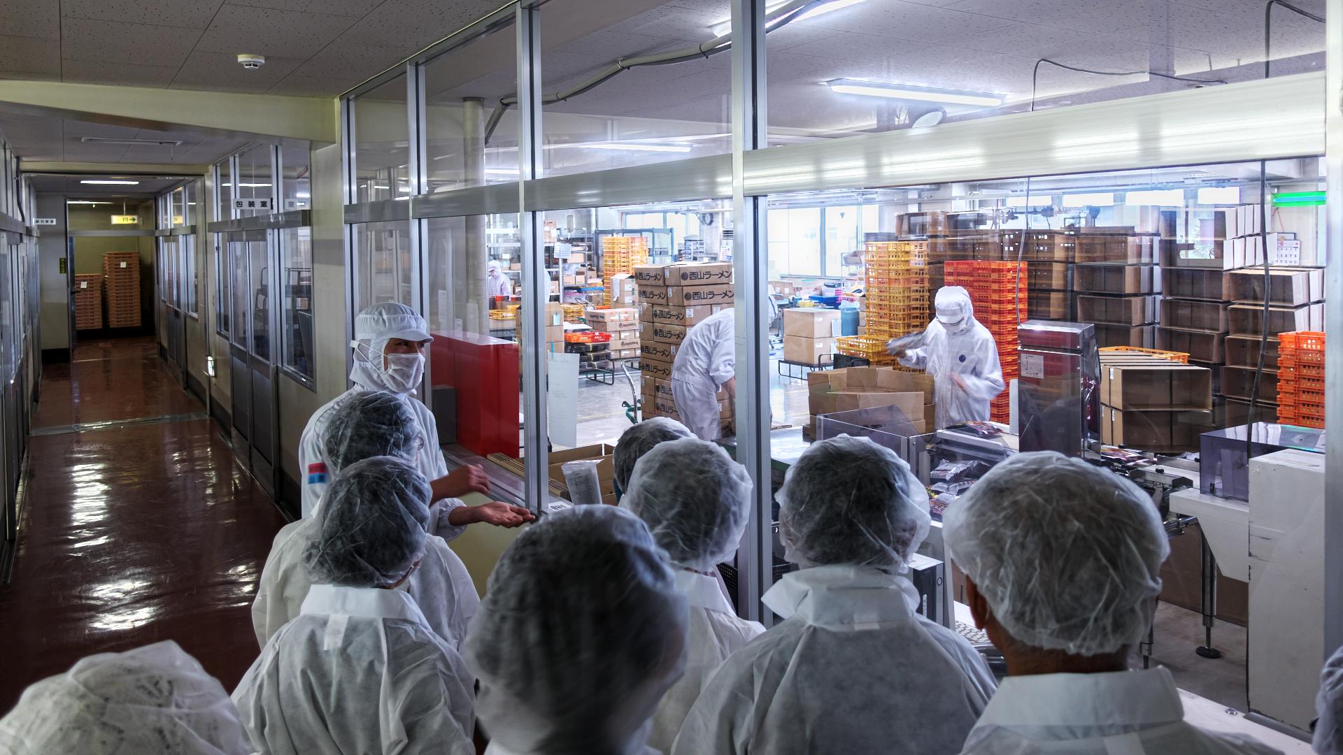 続 西山製麺工場見学 工場担当者からの丁寧な挨拶、海外にも大きく飛躍している西山製麺の沿革などの説明のあと、さすが、食品を扱う衛生管理に厳重な工場だけあって白い作業服を着用し、ヘアーキャップ、マスクをして準備。このあと粘着ローラーでチリ、ごみを一人一人取っていざ現場の見学へ。 投稿者佐藤和春 投稿日2019/06/09(Sun) 15:22 No.198 続 西山製麺工場見学 蒸麺製造工程 投稿者佐藤和春 投稿日2019/06/09(Sun) 15:25 No.199 続 西山製麺工場見学 土曜日にも拘わらず工場は休みではなく手作業で作業を進めていました。 投稿者佐藤和春 投稿日2019/06/09(Sun) 15:30 No.200 続 西山製麺工場見学 麺、具材、スープなどをセットした製品の梱包作業です。 投稿者佐藤和春 投稿日2019/06/09(Sun) 15:33 No.201 続 西山製麺工場見学 最後に、廊下からは見ることが出来ない工場内部を動画で見ました。普段は札幌市内小学校3年生の見学を受け入れていて、一般の人の見学が難しいところを原田さんの尽力で工場見学が実現しました。また往復は藤村さんの手配で無料のバスが確保できました。両人に感謝感謝です。有難うございました。 投稿者佐藤和春 投稿日2019/06/09(Sun) 15:46 No.202