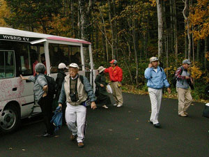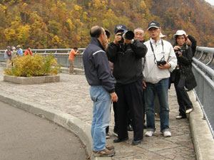 | 最近天候に恵まれなかったデジカメ撮影会でしたが、今回の「紅葉の豊平峡撮影会」は担当リーダーの精進のおかげか良い天候に恵まれました。TVニュースの『豊平峡の紅葉最盛期』報道と好天気に誘われたものすごい紅葉狩観光客の中に我々OSS撮影隊19名も思いの撮影ポイントを求めて散って行きました。盛期の紅葉は勿論、ダムの放水や滝(九段の滝)までありきっと良い写真が撮れたことと思います。時々、メンバーの質問等に的確な指導でフォローしてくれる写真の先輩の姿もあり、全てにつけて良い撮影会となったように思いました。 担当リーダーの皆様、参加の皆様大変ありがとうございました。運転してくださった方々本当にお疲れ様でした。 コメント・写真提供 谷村典彦氏 |