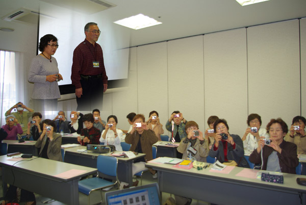入門Tから20日ほど経っていますが、この間に私の所に送って下さった30枚ほどの写真を鑑賞しながら復習をして記憶を確かめ トリミングをして構図のまとめ方にもふれました。その後 良く耳にするけれどよく分からない言葉・・たとえば絞り・シャッタースピード・ISO・露出補正・ホワイトバランスなどについて、カメラで確かめてもらい、出来るだけ分かりやすく具体例やそのために、実際にコンパクトカメラで撮っておいた写真を元に学習を進めました。受講生のみなさん全員に感じることでしたが事前学習を良くしてきてくれました。学習会が上手く進むように事前にメールで御願いしたことを 確実にこなして、練習してきてくれたのです。そうでないと、学習会の貴重な時間が取扱説明書とカメラをにらめっこして、ただ探して終るか何だか分からない間に時間がたってしまったでしょう。受講生のみなさん全員が集中して参加してくれます興味と関心の度合いを強く感じながら、学習会を進めることが出来ることは大変幸せなことです。みなさんの学習態度に今日も感動しました。有難うございました。受講生のみなさんが、以前より少しでも写真撮影に意欲を感じ 写真撮影を楽しんで頂ければ、そんな嬉しいことはありません。少しでもお役に立てていれば幸せなことです。とてもやりやすい、素晴らしい生徒さん達でした。ご協力有難うございました。