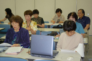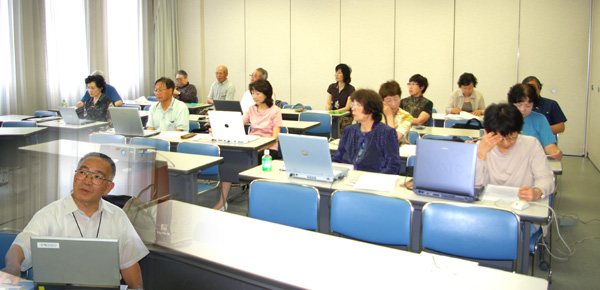 | 今年度のつぼみ学習会がスタートしました。以前の学習会の状況から、より易しくそしてより解りやすくと内容も変えてのつぼみ学習会のスタートでした。易しくしようと思えばさらに話したいこと、見せたいことが、増えてくるのに、反対に足りなくなるのは時間! 難しい!結果として、受講の皆様には物足りなかったり、もしかしてやっぱり解らなかったり、サポーターの皆様に面倒をかけたりしましたが、なんとか終わりました。ただ一つ、XPパソコンとVistaパソコンの画面を簡単に切り替えながら使えるようになったのが救いでした。質問等ありましたら、私宛の直メールでお願いいたします。皆様、大変ありがとうございました (谷村典彦 記) |